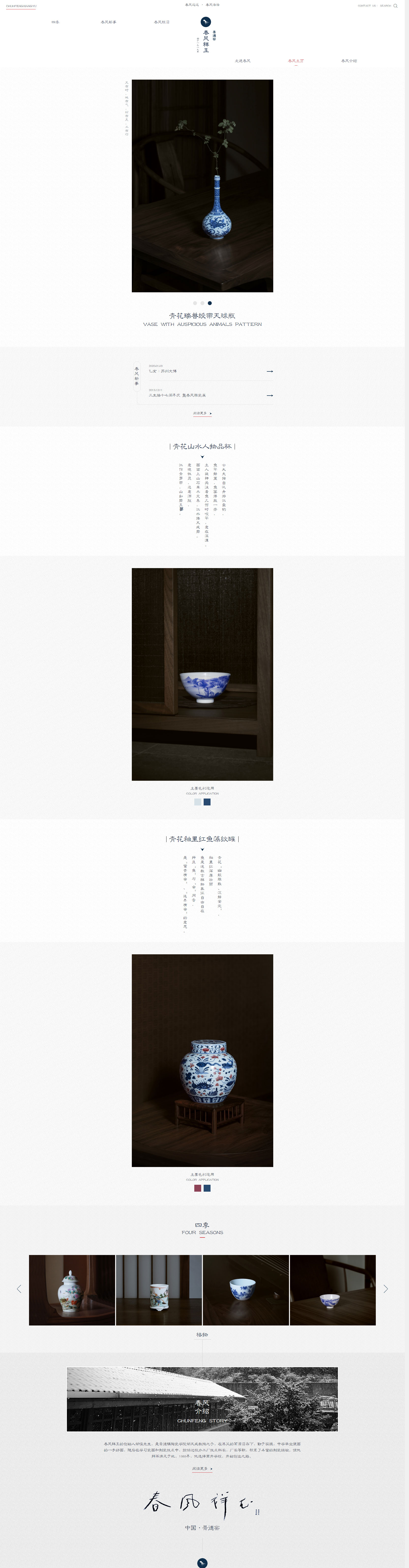 作為茶具文化的開創者之一,在創業之初鄒俊先生便堅持對作品的精益求精,摹古不臨古,融匯傳統儒釋道文化,春風祥玉延續明清瓷器造型豐滿,深厚,古樸,器型線條柔和,圓潤的特點,展示質樸莊重之美,其作品涵蓋青花粉彩各類顏色釉,尤其擅長青花及青花釉里紅。青花分水與釉色堪稱國內一絕,不論是造型還是色澤都具有極高的審美情趣和美學欣賞價值。